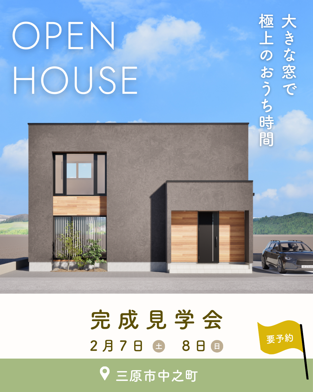 - 2/7.8 完成見学会を開催します!大きい窓と吹抜の家、ぜひご体感ください!