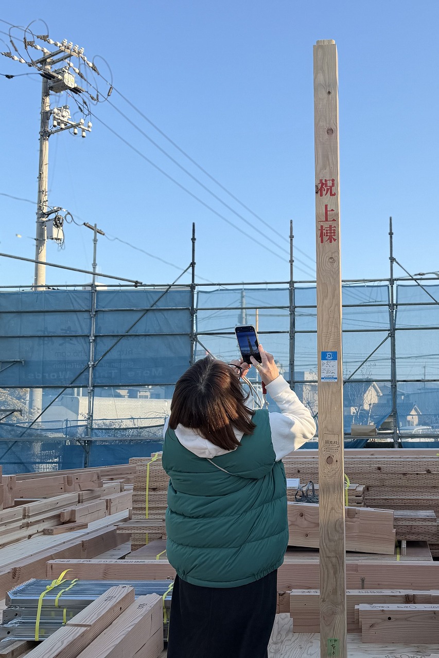 お施主様も記念に柱をパシャリ!