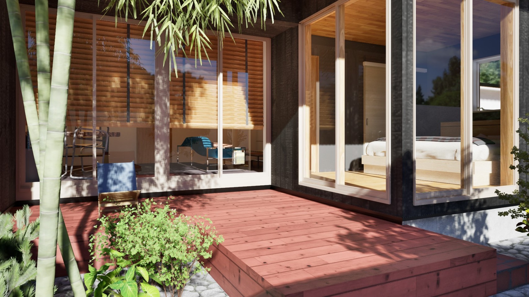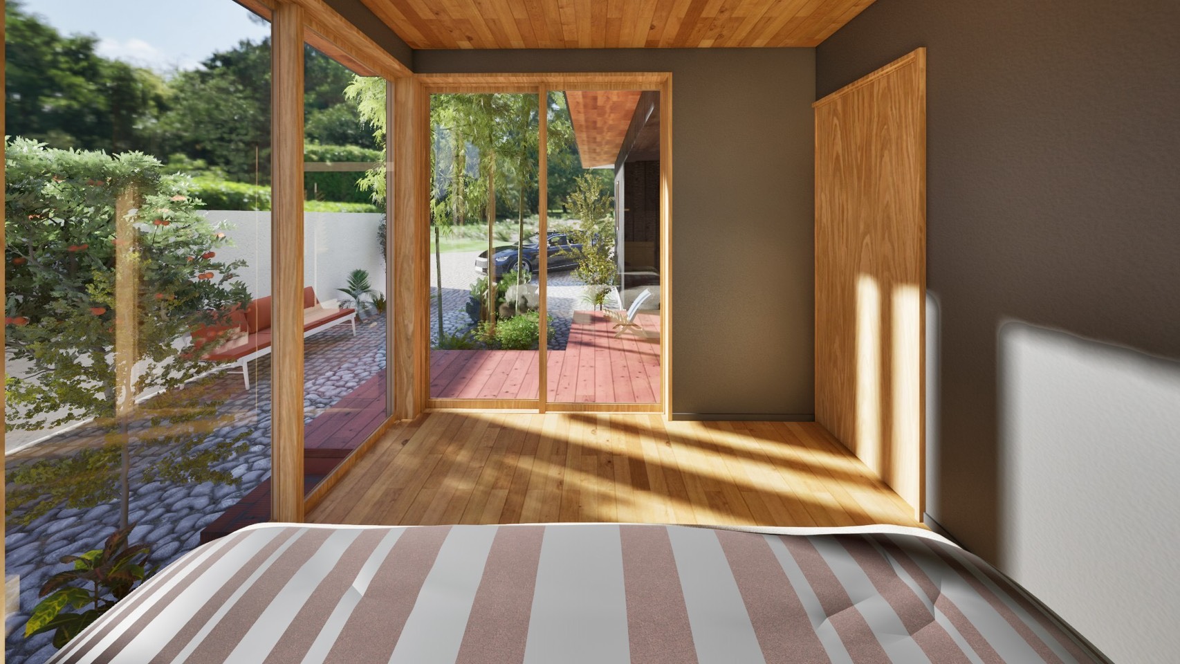 寝室と庭をつなげることで、寝室の最小寸法と言われる6帖でも広がりを感じることが出来ます。