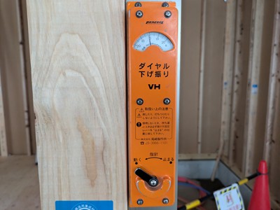 このように実際に柱にあてて目盛りで左右の傾きをみて、