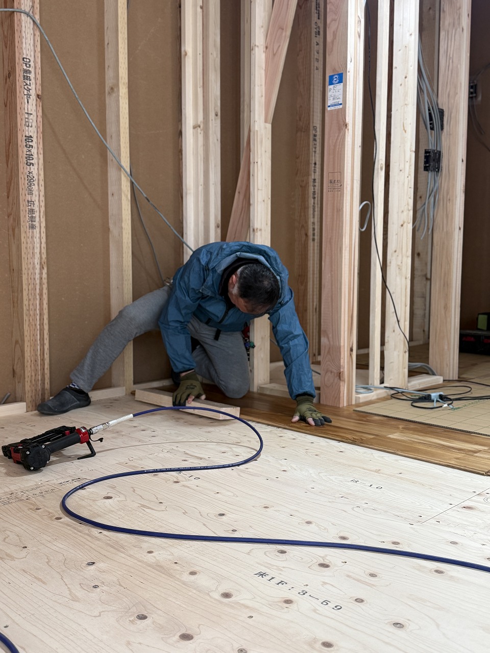 テンポよく、でもとても丁寧に貼っていく大工さん。
