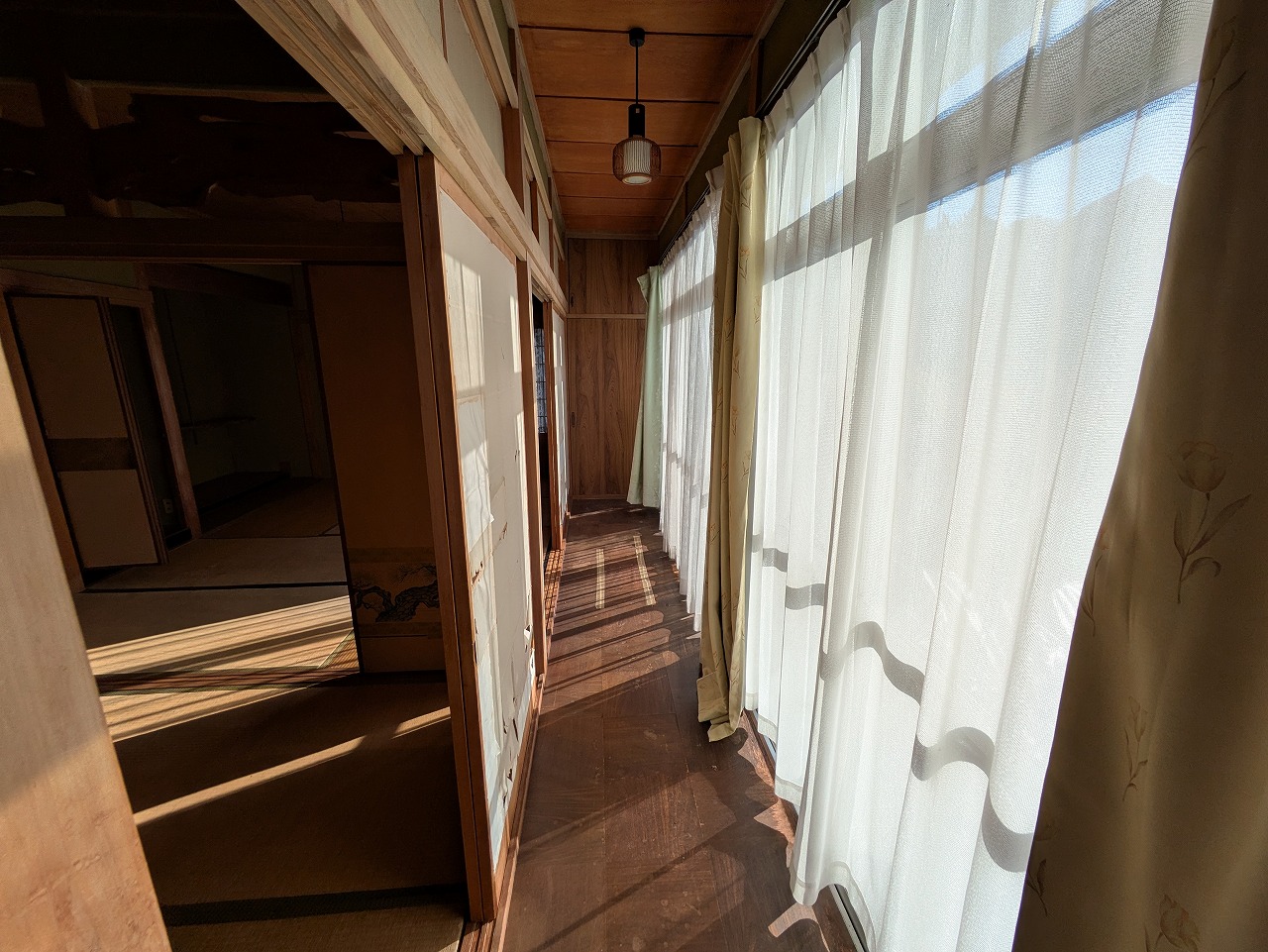 縁側部分はレースのカーテンにしておくだけでも南側からの光がたくさん入ります。
