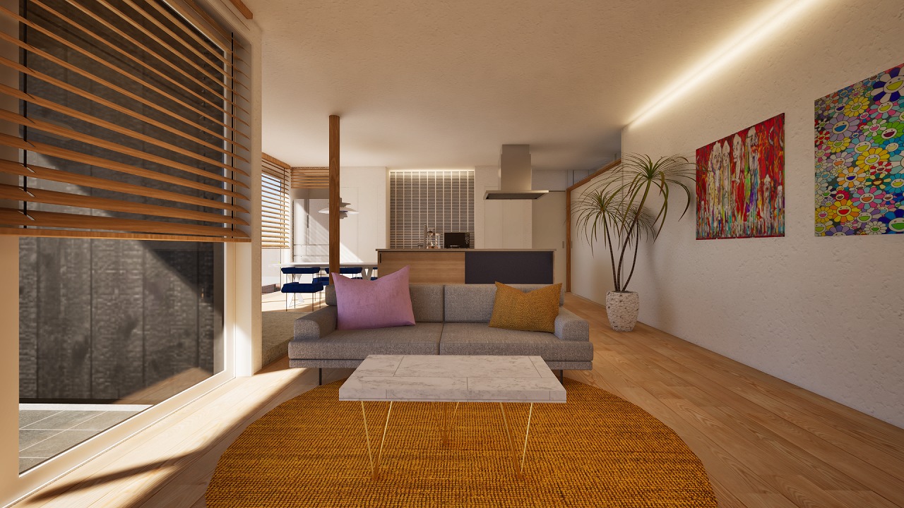 リビングの一部をギャラリースペースとして活用出来る家を考えてみました。