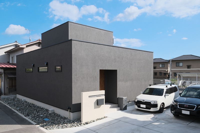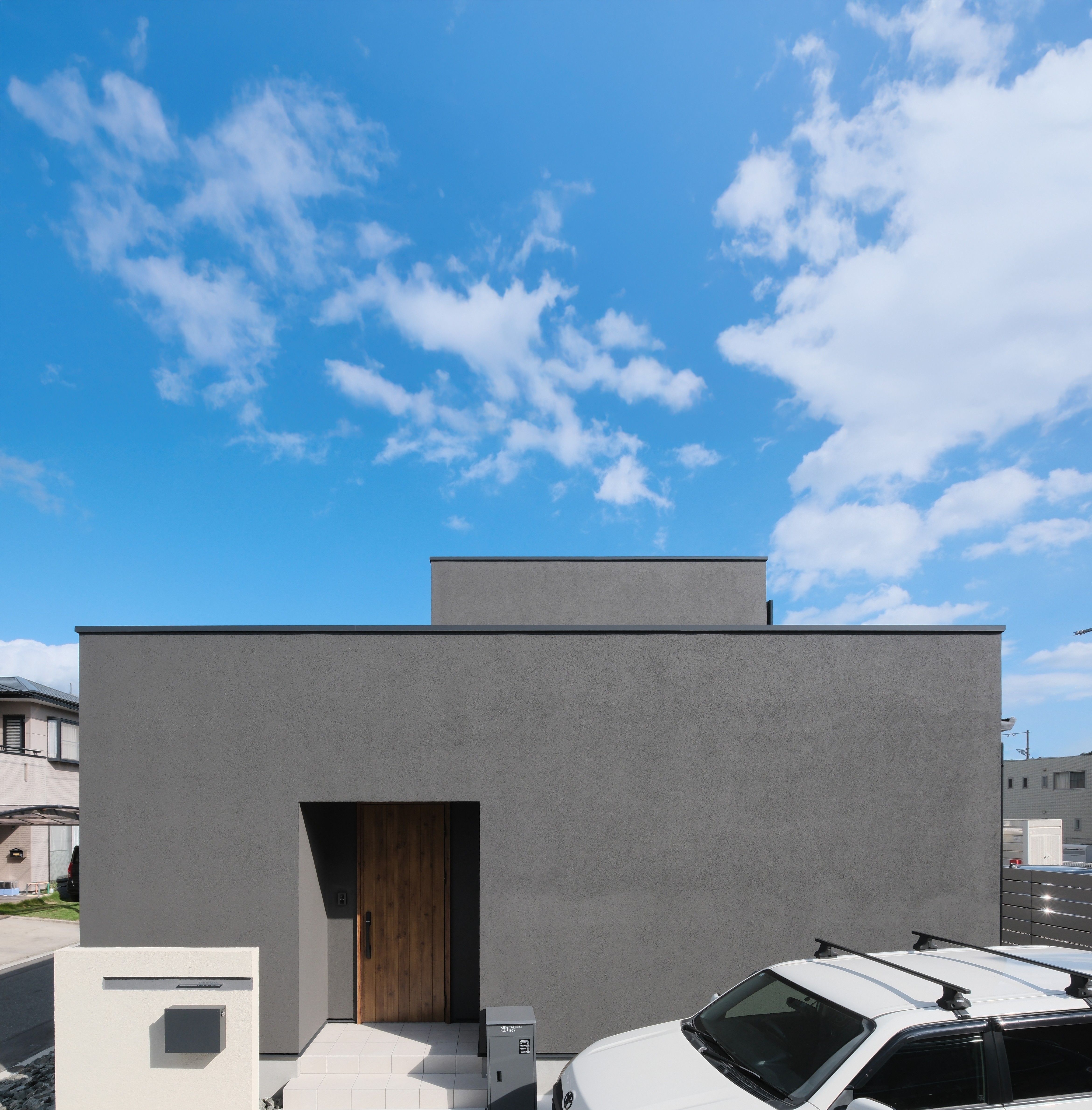 道路からの視線をさりげなく遮りつつ、玄関まわりに奥行きを持たせることで、プライバシーとデザイン性を両立しました。