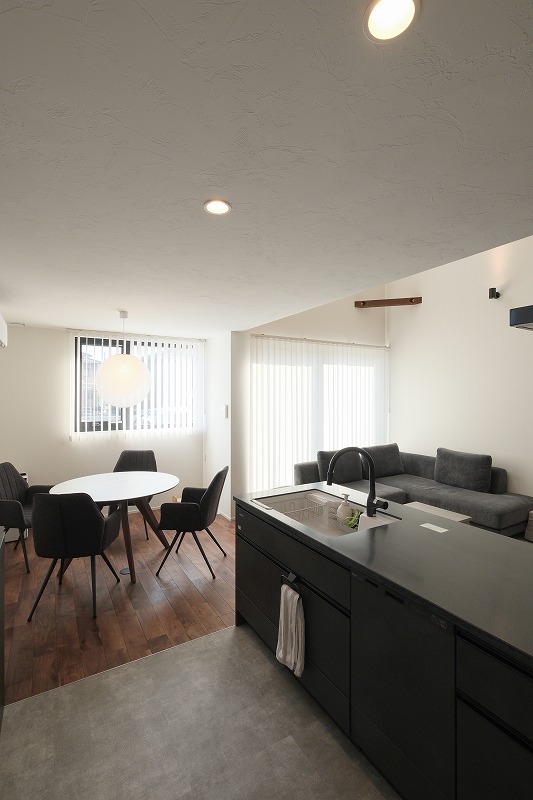 グレーを基調にしたインテリアが落ち着いた雰囲気をつくり、まるでホテルラウンジのような上質なくつろぎを演出します。