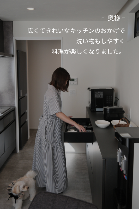 リビングと一体になったオープンスタイルで、家族との会話を楽しみながら料理ができるキッチンです。