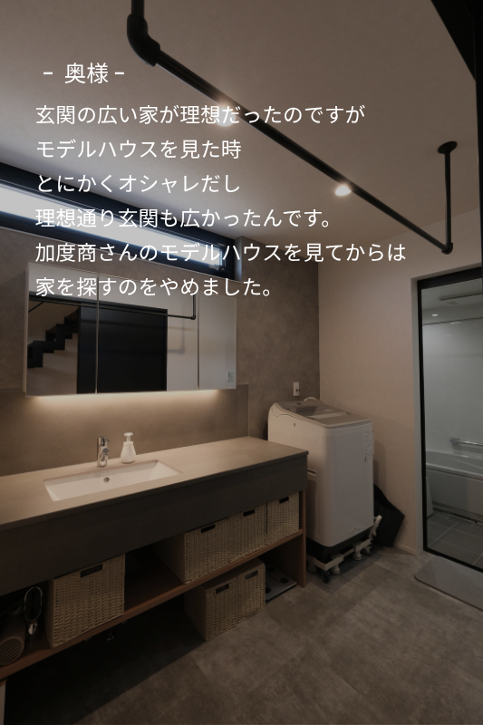 グレー系でまとめた上質な素材感が際立つ造作洗面台。