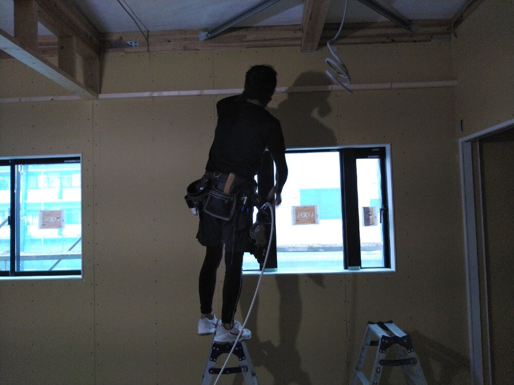 現在壁ボードの施工中です。