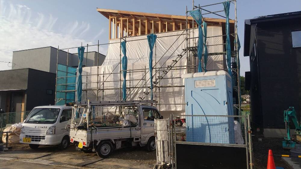 この後、上棟まで数日あるのでブルーシートで養生をして上棟を待ちます。