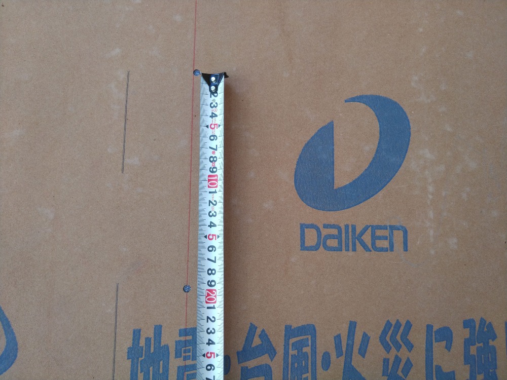 現場確認の際は、こんな感じでスケールを充てて釘のピッチを確認しています。
