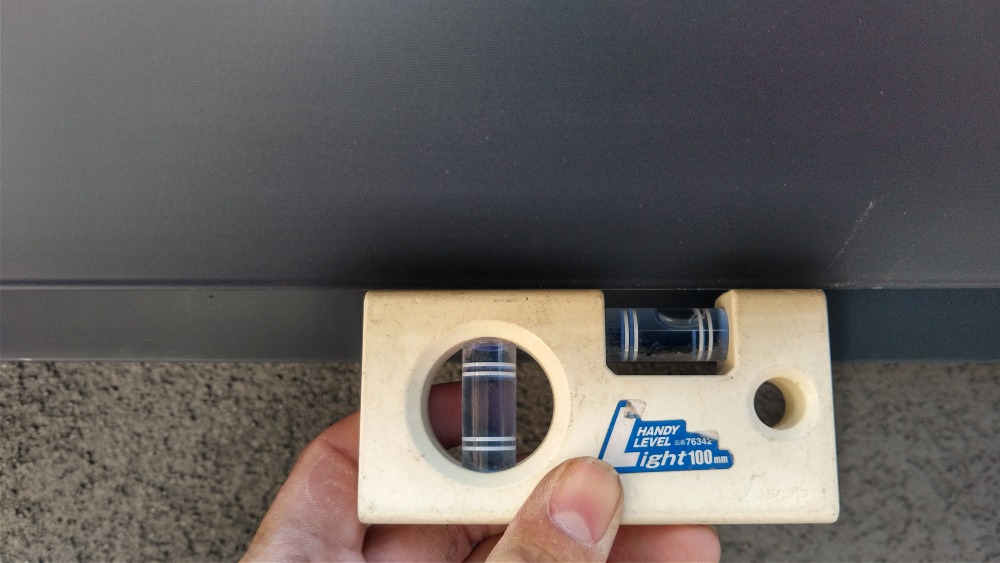 樋の勾配は写真のように実際に水平器であたって勾配の有無を確認していきます。