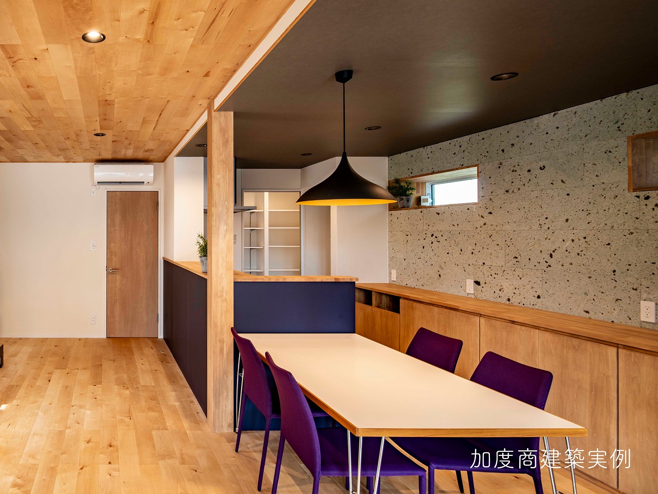 木の質感が活きた温かみのある一体感のある空間に仕上がります。