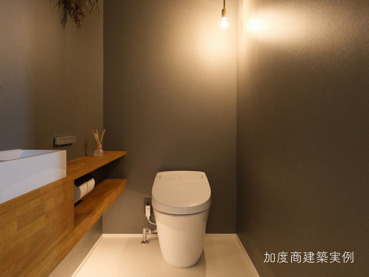 トイレ全体に温かみと落ち着きのある雰囲気に。