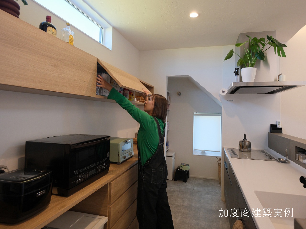 炊飯器用のスライド棚や家電専用スペースまで自由に設計できます。