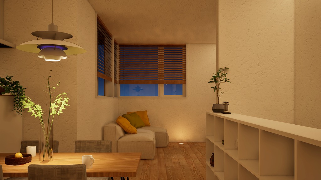 2階リビングは道路や隣家からの視線を自然に避け、カーテンを閉め切らなくても開放的に過ごせます。