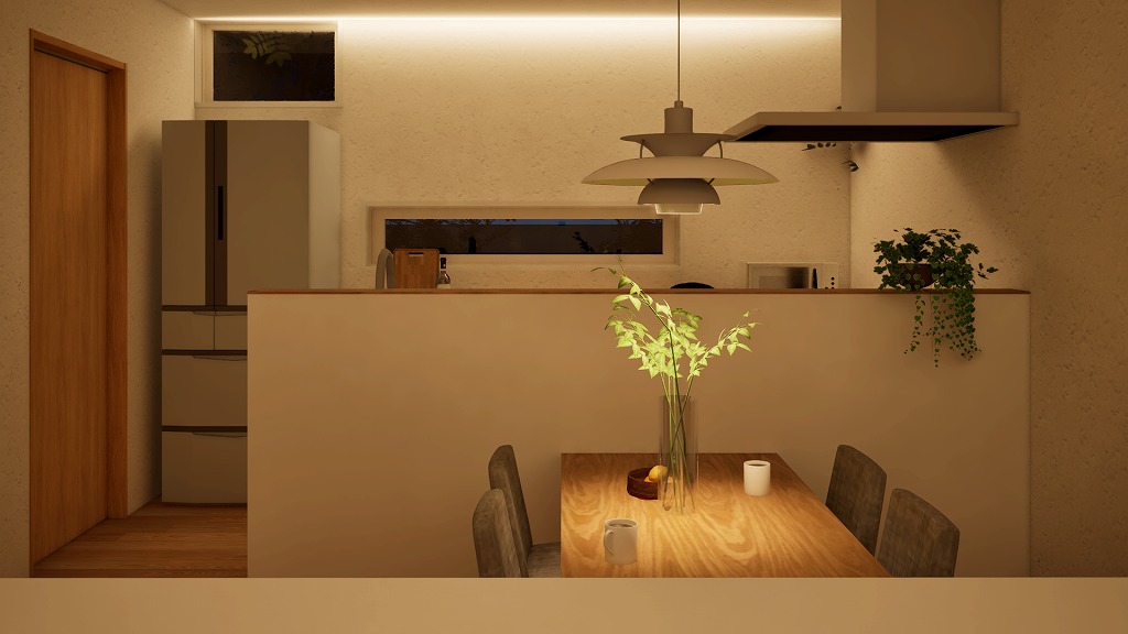 食卓との距離が近く、会話が弾む空間を実現しました。