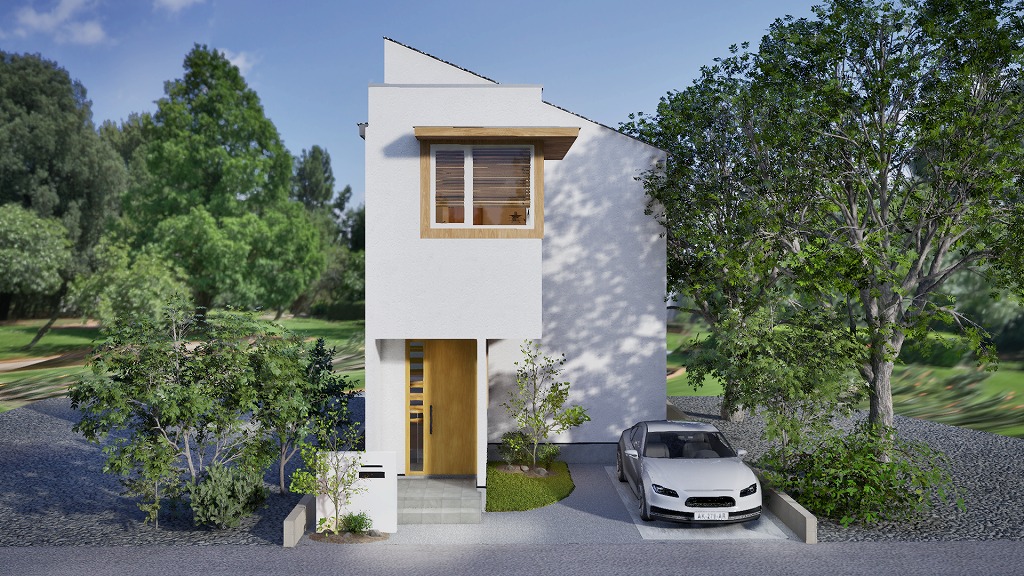 片流れ屋根が描くシルエットは、コンパクトながらも洗練された印象を与えます。