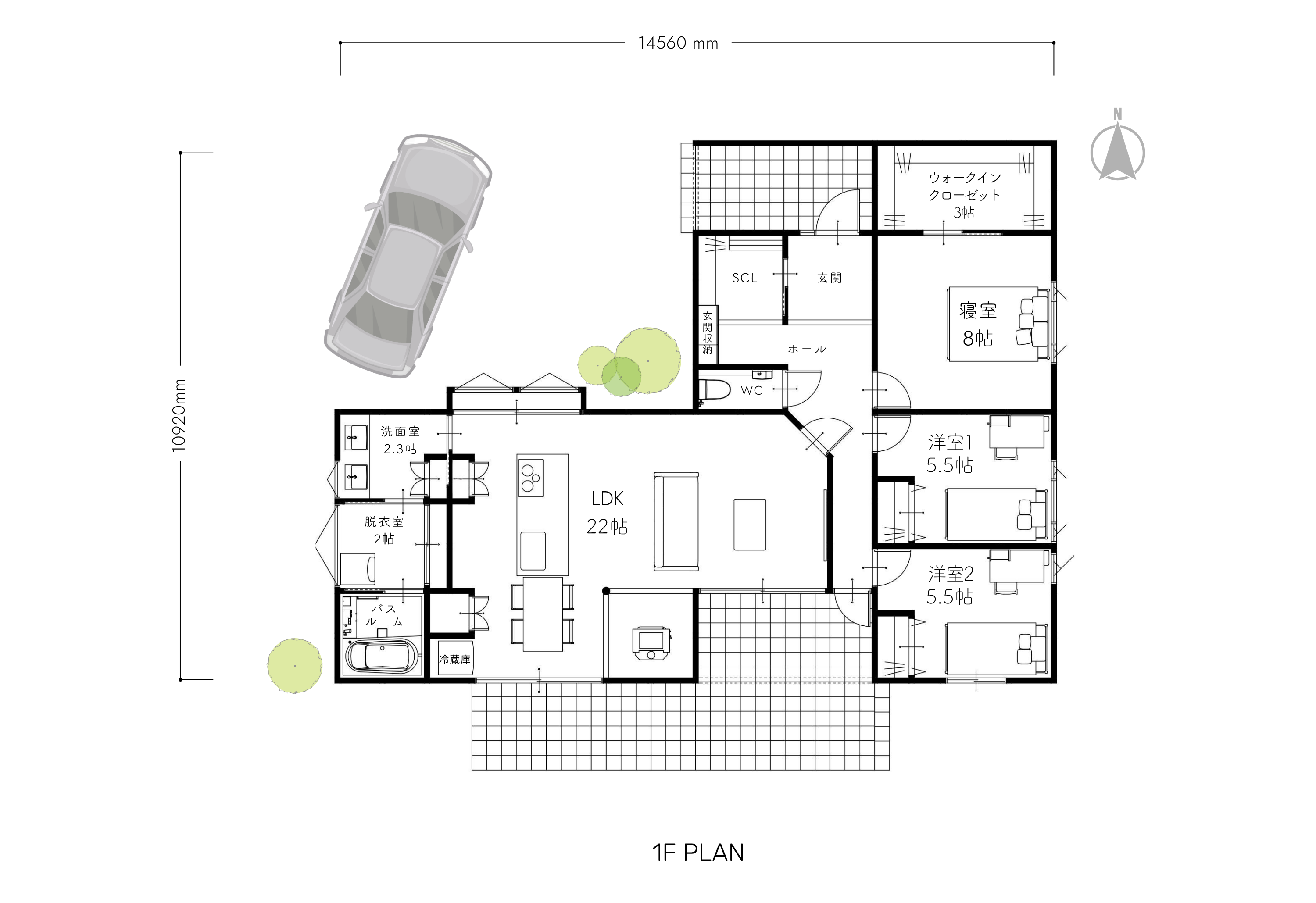 吹抜けのないフラットな天井と開口のバランスを整え、冬は暖を、夏は通風を確保する設計としました。