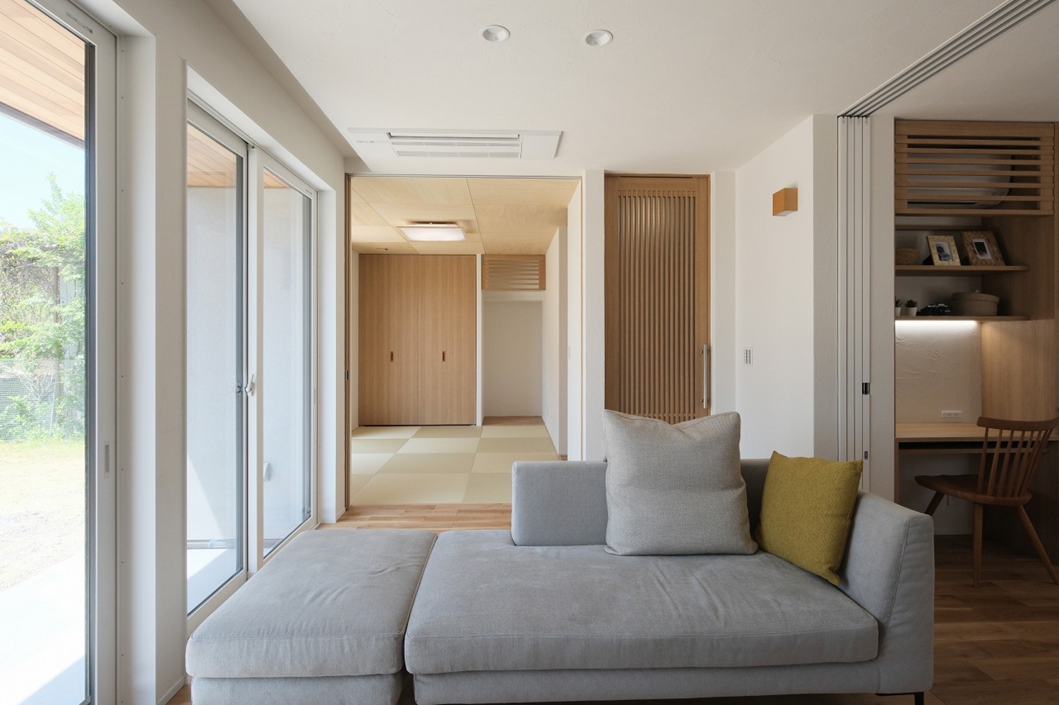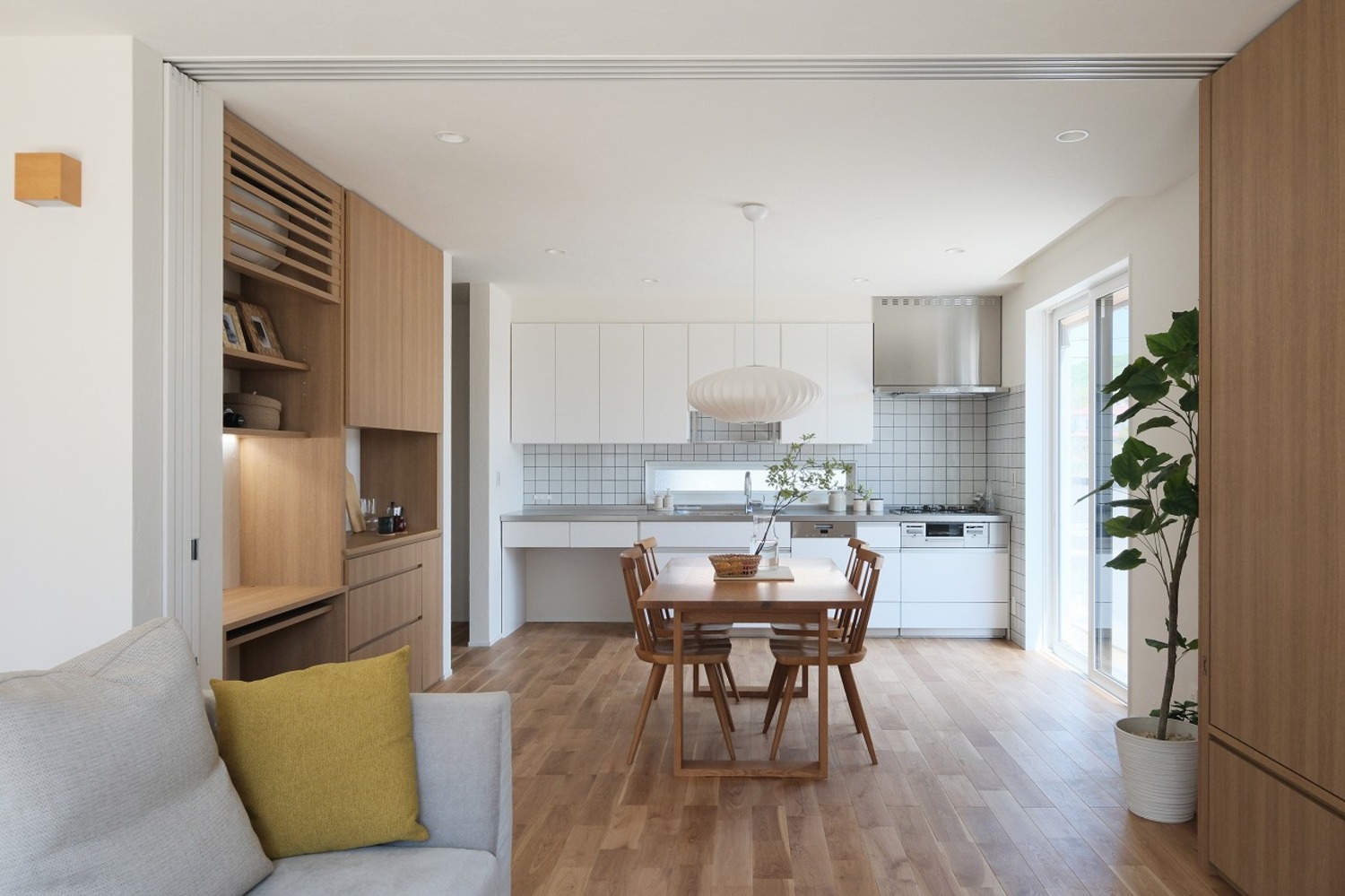 ホーム 写真集 完成物件 福山市 No.249 こだわりの造作家具と建具が創る贅沢な質感を纏う家 No.249 こだわりの造作家具と建具が創る贅沢な質感を纏う家 福山市 完成物件|福山市 板張りで仕上げた軒のある家。 木の温もりを感じる、美しい軒がグレー外観のアクセントに。画像のみを表示全 22 枚中 1 枚目を表示Next ≫ 「食べる・くつろぐ・働く」が心地よくつながる、暮らしに寄り添うLDK。ダイニング横にワークスペース。ちょうどいい距離感。ぜんぶハイドア!空間が広く見えるひみつ◎画像のみを表示全 22 枚中 2 枚目を表示≪ Prev|Next ≫ 照明、収納、家具、すべてがやさしく溶け合う暮らしの真ん中。画像のみを表示全 22 枚中 3 枚目を表示≪ Prev|Next ≫ 午後のキッチン、静けさが心地いい。画像のみを表示全 22 枚中 4 枚目を表示≪ Prev|Next ≫ 木の温もりあふれるダイニングは、家族が自然と集まる場所。 隣接するキッチンは白を基調に清潔感があり、毎日の料理や会話を楽しめる空間に仕上げました。画像のみを表示全 22 枚中 5 枚目を表示≪ Prev|Next ≫ リビングとダイニングキッチンを仕切る引き戸は、全開にすれば一体感ある広々空間に。戸は壁にすっきり納まり、見た目もスマート。引き戸はもちろん、造作です~画像のみを表示全 22 枚中 6 枚目を表示≪ Prev|Next ≫ 食器棚、スタディデスク、エアコンルーバー、TVボードまですべて造作で統一。空間全体に一体感と美しさが生まれます。画像のみを表示全 22 枚中 7 枚目を表示≪ Prev|Next ≫ 左の扉を閉めれば、生活感をすっきり隠して上質なインテリアに。画像のみを表示全 22 枚中 8 枚目を表示≪ Prev|Next ≫ 扉を開放するだけで、空間の印象が一変。つながりと広がりを楽しめる間取りです。画像のみを表示全 22 枚中 9 枚目を表示≪ Prev|Next ≫ 大谷石の壁が、リビングをぐっと上質に。画像のみを表示全 22 枚中 10 枚目を表示≪ Prev|Next ≫ リビングの奥には、家族がくつろげる和室スペースを配置。 開けて一体、閉じて個室にも。画像のみを表示全 22 枚中 11 枚目を表示≪ Prev|Next ≫ フチなし畳×木のやさしさ。暮らしに和みを~ 和室の一角には仏壇を置けるスペースを確保。 現代的なデザインの中にも、伝統的な暮らしのしつらえを大切にしています。画像のみを表示全 22 枚中 12 枚目を表示≪ Prev|Next ≫ ただの出入り口じゃない、“見せる扉”のある暮らし。画像のみを表示全 22 枚中 13 枚目を表示≪ Prev|Next ≫ 鉄骨階段の下にそっと仕込んだ照明が、空間にやさしい陰影を添えます。手すりは木のぬくもりを感じられるよう、細部までこだわったデザインに。画像のみを表示全 22 枚中 14 枚目を表示≪ Prev|Next ≫ 生活感を隠してくれる、頼れる玄関収納。おもてなしの印象もアップ。 靴も道具も隠してスッキリ◎画像のみを表示全 22 枚中 15 枚目を表示≪ Prev|Next ≫ すべて造作の建具で統一感ある空間に。ハイドアで天井まで視線が抜け、より開放的に。 そして、ただの通路じゃもったいない。階段もインテリアに。画像のみを表示全 22 枚中 16 枚目を表示≪ Prev|Next ≫ キッチン横にパントリーを設け、食品や日用品のストックをすっきり収納。 可動棚で使い勝手よく整理でき、ロールスクリーンを下ろせば生活感を隠せる工夫も。画像のみを表示全 22 枚中 17 枚目を表示≪ Prev|Next ≫ 玄関横には、5帖の大容量の土間収納を設けました。画像のみを表示全 22 枚中 18 枚目を表示≪ Prev|Next ≫ アウトドア用品やストック品もたっぷり収納可能! 可動棚付きで使い勝手も良く、暮らしに合わせて自在にアレンジ可能です。画像のみを表示全 22 枚中 19 枚目を表示≪ Prev|Next ≫ 天井にすっきり隠れる物干しバーと、造作カウンターで整うランドリースペース。 この先は洗面室。家事も身支度もスムーズにこなせる、快適な動線計画。画像のみを表示全 22 枚中 20 枚目を表示≪ Prev|Next ≫ 脱衣室と浴室が直結したシンプルな動線に、幹太くんの台は造作で美しく収めました。 見た目スッキリ、使い勝手ばっちり。画像のみを表示全 22 枚中 21 枚目を表示≪ Prev|Next ≫ 見上げたときに感じる心地よさ。軒天の板張りが、外観に上質感を添えます。画像のみを表示全 22 枚中 22 枚目を表示≪ Prev 「加度商の家を選んでよかったです」 \笑顔あふれるお客様の声をご紹介しています/ 加度商で建てた人の声はこちら 今、実際に見学できる家があります! 「築15年を楽しむ家」 尾道市栗原西 ご予約はこちら 期間限定開催のお客様の家「完成見学会」 見学会・イベント情報はこちら LINEおともだち限定の特典情報満載 まずは、おともだち登録してカッコいい家づくりの勉強をしてみませんか? 一覧へ戻る 完成物件 リフォーム・リノベーション 店舗・事務所 平屋 すべて 尾道市 福山市 三原市 一覧 一覧 一覧