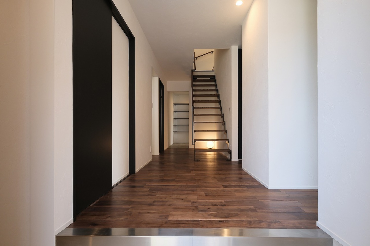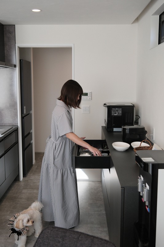 ホーム 写真集 完成物件 すべて No.253 ホテルライクな暮らしを叶えるモノトーンの家 No.253 ホテルライクな暮らしを叶えるモノトーンの家 福山市 完成物件|すべて 黒の外壁と水平ラインが際立つ、端正な佇まい。 機能性と美しさを両立した住まいです。画像のみを表示全 21 枚中 1 枚目を表示Next ≫ 陰影が映える塗り壁と直線的なフォルム。 シンプルを極めたデザインが、時を経ても色あせません。画像のみを表示全 21 枚中 2 枚目を表示≪ Prev|Next ≫ 大きな窓から光が差し込む、のびやかな空間。 キッチンに立つと、部屋全体が見渡せて、家族の気配も感じられます。画像のみを表示全 21 枚中 3 枚目を表示≪ Prev|Next ≫ 吹き抜けの高さと大きな窓からの光で、自然と家族が集まるリビングに。 わんちゃんとの時間も、なんだか特別に感じられるひととき。画像のみを表示全 21 枚中 4 枚目を表示≪ Prev|Next ≫ 無駄のない動線と、統一感のある造作カップボード。 見た目の美しさと使いやすさを両立したキッチンです。画像のみを表示全 21 枚中 5 枚目を表示≪ Prev|Next ≫ 落ち着いたトーンのキッチンは、木のぬくもりある床材との相性も抜群。 デザイン性だけでなく、収納力や家事動線も考えた設計で、毎日の家事もスムーズに。画像のみを表示全 21 枚中 6 枚目を表示≪ Prev|Next ≫ 空間に静かに溶け込む、フラットで美しいキッチン。 黒とグレーの濃淡が、素材の質感を引き立てます。画像のみを表示全 21 枚中 7 枚目を表示≪ Prev|Next ≫ 2方向から光が入るダイニングスペース。 朝ごはんの時間も、自然光で気持ちよく過ごせます。画像のみを表示全 21 枚中 8 枚目を表示≪ Prev|Next ≫ 天然石の壁が印象的なリビング空間。テレビは壁掛けにすることで、すっきりとした佇まいに。 素材の質感が空間に奥行きを与え、空間全体を引き締めます。画像のみを表示全 21 枚中 9 枚目を表示≪ Prev|Next ≫ 光と影をまといながら、空間に奥行きをつくる階段。 下からの照明が、その美しさを際立たせます。画像のみを表示全 21 枚中 10 枚目を表示≪ Prev|Next ≫ グレーのカウンターに、木目の固定棚をプラスした造作洗面台。広めの天板で朝の準備もスムーズに。 奥には浴室もつながっていて、家事動線も◎です。画像のみを表示全 21 枚中 11 枚目を表示≪ Prev|Next ≫ 吹き抜けの高さと上の窓から入る光で、空間にのびやかさと明るさをプラス。 化粧火打ちや間接照明の配置も、シンプルな中にさりげないデザイン性を加えています。画像のみを表示全 21 枚中 12 枚目を表示≪ Prev|Next ≫ ただいま、の一歩目で広がるこの景色。 ステンレスの框とブラックウォールナットの無垢床が、空間をほどよく引き締めてくれます。画像のみを表示全 21 枚中 13 枚目を表示≪ Prev|Next ≫ 1階と2階のつながりを感じられる開放的な吹き抜け。 高窓と角度調整可能なスポットライトが、時間帯ごとの表情を楽しませてくれます。 シーリングファンをつけることで、夏も冬も空気が循環して快適◎画像のみを表示全 21 枚中 14 枚目を表示≪ Prev|Next ≫ 踏板には落ち着いた木目を採用し、アイアンのササラ桁や手すりと組み合わせることで空間のアクセントに。 抜け感のあるデザインは、圧迫感を抑えつつ、吹き抜け空間との相性も抜群です。画像のみを表示全 21 枚中 15 枚目を表示≪ Prev|Next ≫ アクセントパネルには繊細なテクスチャのダークグレーを採用し、落ち着きと高級感を演出。 床は水はけが良くお手入れもしやすいタイル調で、毎日快適に使える空間に仕上げました。画像のみを表示全 21 枚中 16 枚目を表示≪ Prev|Next ≫ グレージュのクロスに石目調の床を合わせて、さりげなく上質な雰囲気に。 タオルホルダーやペーパーホルダーもブラックでまとめて、空間をキリっと引き締めました。画像のみを表示全 21 枚中 17 枚目を表示≪ Prev|Next ≫ お気に入りの服も、季節ものも、ぜんぶまとめてひとつの場所に。 毎日の「着る」がちょっと楽しくなる、ファミリークローゼットです。画像のみを表示全 21 枚中 18 枚目を表示≪ Prev|Next ≫ 扉の奥には、ブラックの可動棚を備えたパントリー空間を設けました。 キッチンと一体で使いやすく、生活感をすっきり隠せます。画像のみを表示全 21 枚中 19 枚目を表示≪ Prev|Next ≫ 靴やアウトドア用品をすっきりと。 直線的な黒の可動棚が、空間の印象を引き締めます。画像のみを表示全 21 枚中 20 枚目を表示≪ Prev|Next ≫ 人工芝のプライベートガーデンで、のびのび遊べる安心空間。 おうちのすぐそばで、家族と愛犬の笑顔が広がります。画像のみを表示全 21 枚中 21 枚目を表示≪ Prev 「加度商の家を選んでよかったです」 \笑顔あふれるお客様の声をご紹介しています/ 加度商で建てた人の声はこちら 今、実際に見学できる家があります! 「築15年を楽しむ家」 尾道市栗原西 ご予約はこちら 期間限定開催のお客様の家「完成見学会」 見学会・イベント情報はこちら LINEおともだち限定の特典情報満載 まずは、おともだち