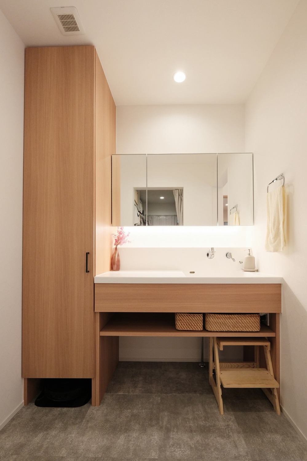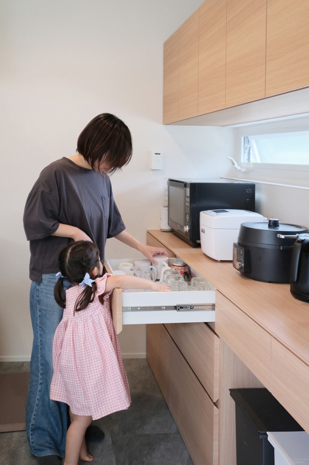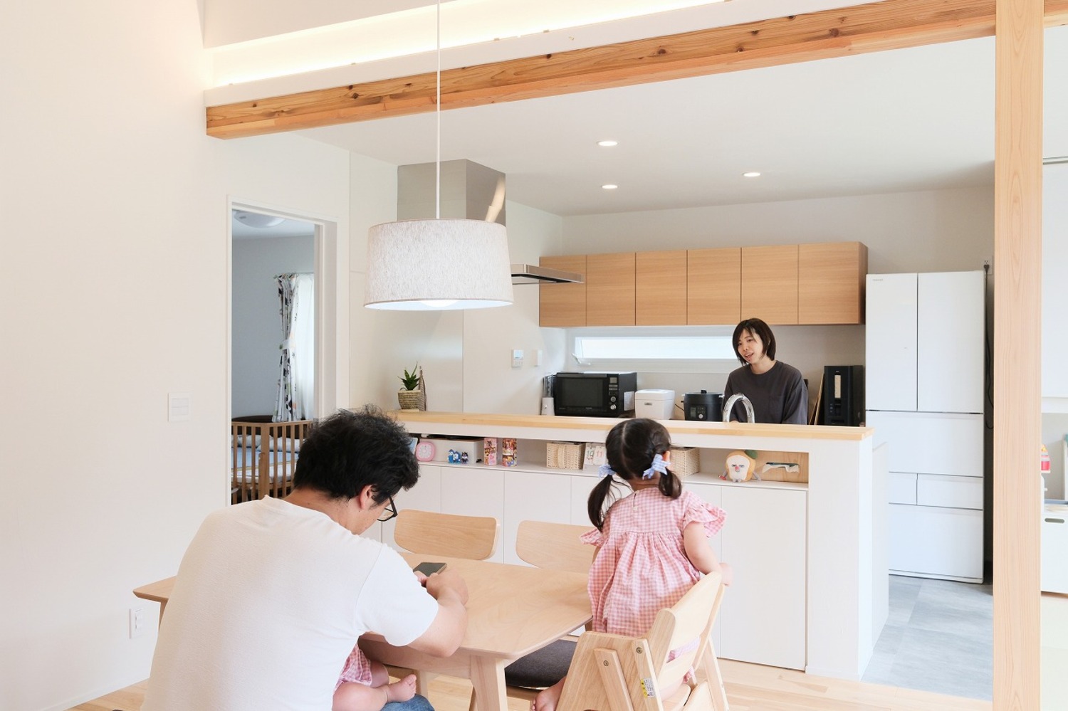 ホーム 写真集 完成物件 尾道市 No.254 勾配天井で広がる空間、のびのびと暮らす平屋の家 No.254 勾配天井で広がる空間、のびのびと暮らす平屋の家 尾道市 完成物件|尾道市 ツートンカラーが印象的なシンプルモダンな外観。 片流れ屋根に太陽光パネルを搭載し、省エネにも配慮。 自然と共に暮らす、これからの時代にふさわしい住まいです。画像のみを表示全 16 枚中 1 枚目を表示Next ≫ 色のトーンを抑えることで、凹凸のある立体感が際立つ外観。 時間帯によって変わる陰影が、静かな存在感を生み出します。画像のみを表示全 16 枚中 2 枚目を表示≪ Prev|Next ≫ 天井に伸びる梁と、LDKをゆるやかに区切る柱には、木の風合いがそのまま生きる化粧仕上げを採用。 開放感のある間取りに、木の存在がぬくもりと安心感を添えています。画像のみを表示全 16 枚中 3 枚目を表示≪ Prev|Next ≫ 勾配天井にすることで、平屋とは思えない広がりある空間に。 コンパクトな間取りでも、実際以上の広さを感じられる工夫です。画像のみを表示全 16 枚中 4 枚目を表示≪ Prev|Next ≫ キッチンからダイニング、洗面・ランドリーまでが一直線につながる間取り。 移動が最小限で済むから、家事の効率もアップします。画像のみを表示全 16 枚中 5 枚目を表示≪ Prev|Next ≫ リビングと同じ高さでつながる畳スペースは、小さなお子様の遊び場や来客時のくつろぎスペースとしても活躍します。 ロールスクリーンでおもちゃや布団もサッと隠せて、すっきり空間に。画像のみを表示全 16 枚中 6 枚目を表示≪ Prev|Next ≫ 木の温もりを感じるハイドアや床、白を基調とした壁や建具で、清潔感と落ち着きのある雰囲気に。 どこにいても心がホッとする空間です。画像のみを表示全 16 枚中 7 枚目を表示≪ Prev|Next ≫ リビングには、壁付けの造作TVボードを設置。 床から浮かせたデザインにすることで、空間がすっきり見えるだけでなく、日々のお掃除もラクになります。画像のみを表示全 16 枚中 8 枚目を表示≪ Prev|Next ≫ ナチュラルな木の床と、同系色の吊戸棚で統一感を。 キッチン前の腰壁には、手元を隠しつつ使い勝手のいい造作収納を。 天板の一部にはニッチを設け、本や細々したものを置ける工夫もされています。画像のみを表示全 16 枚中 9 枚目を表示≪ Prev|Next ≫ リビングやダイニングとのつながりを大切にした対面キッチン。 窓からの自然光が、手元までしっかり照らします。 画像のみを表示全 16 枚中 10 枚目を表示≪ Prev|Next ≫ 壁面にぴったりと収まるサイズで設計された造作カップボードは、無駄のない美しい仕上がりに。 キッチン床には、水や油汚れに強く、傷も付きにくいフロアタイルを採用。 毎日の料理も安心です。画像のみを表示全 16 枚中 11 枚目を表示≪ Prev|Next ≫ 洗面台の高さや棚の奥行きなど、日々の動作に合わせて設計されたナチュラルな木目の造作洗面台。 床にはグレートーンのフロアタイルを選び、空間を引き締めています。画像のみを表示全 16 枚中 12 枚目を表示≪ Prev|Next ≫ 家に入るとバーチ無垢床とアーチの組み合わせが、どこかやさしい空気感をつくり出すホール。 シンプルな空間の中に、さりげないアクセントを添えています。 ガラス張りのハイドアの先は、明るく開放感あるリビングへ。画像のみを表示全 16 枚中 13 枚目を表示≪ Prev|Next ≫ コンパクトながらも手洗い・吊戸棚付きで、使い勝手も抜群。 必要な機能が無駄なくおさまった、気持ちよく使える空間です。画像のみを表示全 16 枚中 14 枚目を表示≪ Prev|Next ≫ ランドリールームには、無駄のない設計でアイアンの物干しを設置。 洗濯動線を意識して、脱ぐ→洗う→干すをこの1カ所で完了。 天候に左右されず干せるのも嬉しいポイントです。画像のみを表示全 16 枚中 15 枚目を表示≪ Prev|Next ≫ 家の中を行き来しやすい動線上に配置したファミリークローゼット。 洗濯→収納→着替えの流れがスムーズになり、家事の時短にもつながります。 両サイドにあるカーテンでサッと隠せるから、来客時でも安心。画像のみを表示全 16 枚中 16 枚目を表示≪ Prev 「加度商の家を選んでよかったです」 \笑顔あふれるお客様の声をご紹介しています/ 加度商で建てた人の声はこちら 今、実際に見学できる家があります! 「築15年を楽しむ家」 尾道市栗原西 ご予約はこちら 期間限定開催のお客様の家「完成見学会」 見学会・イベント情報はこちら LINEおともだち限定の特典情報満載 まずは、おともだち登録してカッコいい家づくりの勉強をしてみませんか? 一覧へ戻る 完成物件 リフォーム・リノベーション 店舗・事務所 平屋 すべて 尾道市 福山市 三原市 一覧 一覧 一覧