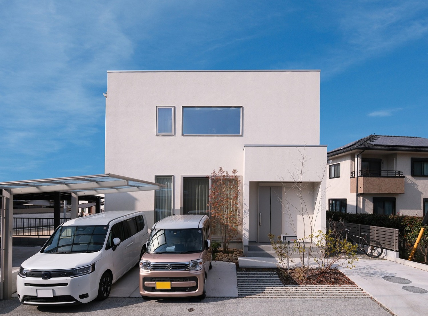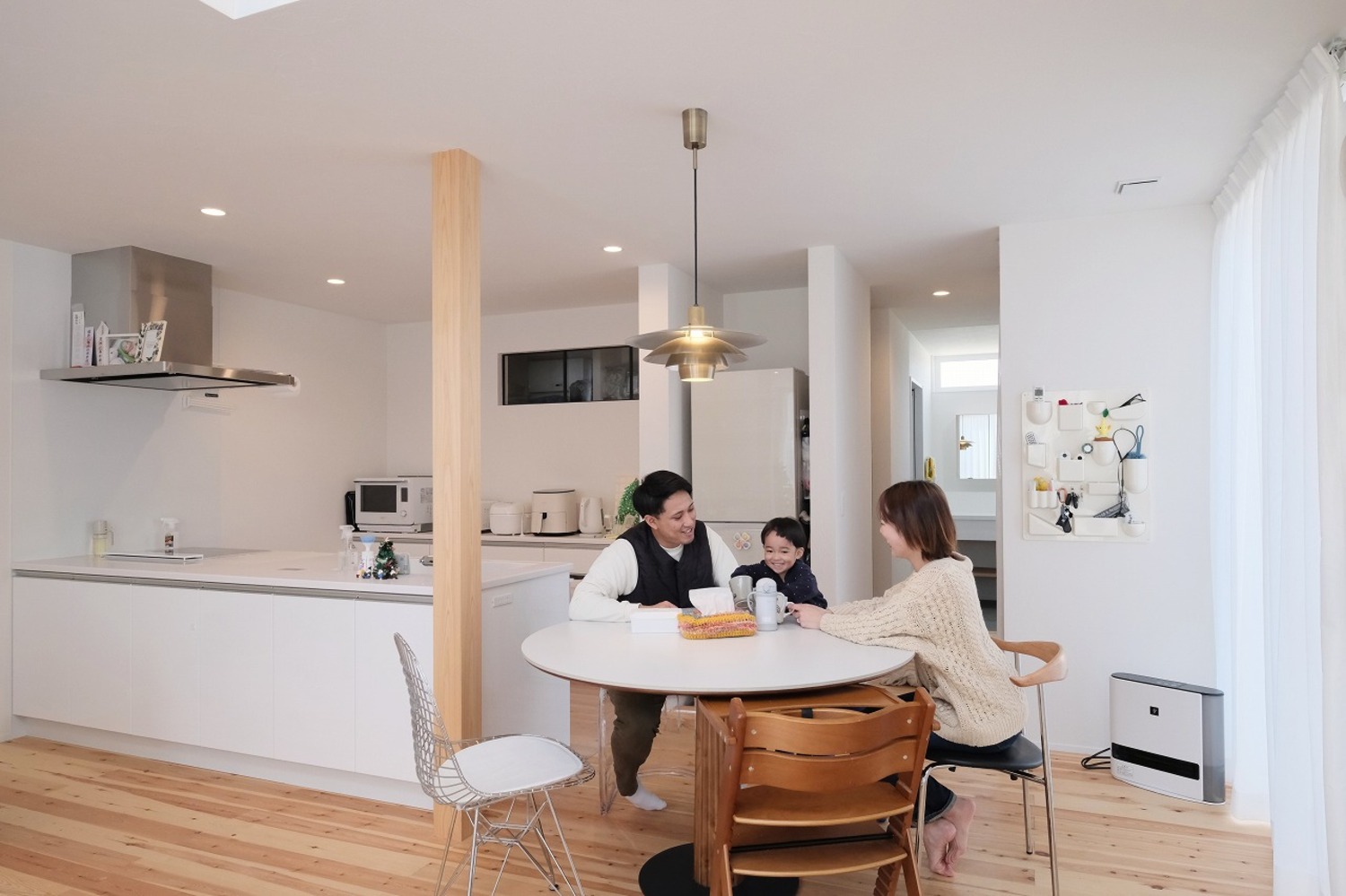 ホーム 写真集 完成物件 すべて No.255 遊び心と開放感を楽しむ、白い家 No.255 遊び心と開放感を楽しむ、白い家 福山市 完成物件|すべて 無駄をそぎ落としたスクエアデザインと、清潔感のある白い外壁が印象的な住まい。 シンプルだからこそ、周囲の景色や植栽を引き立て、どんな街並みにも溶け込むデザインです。画像のみを表示全 15 枚中 1 枚目を表示Next ≫ 無垢の床と、白を基調にしたシンプルな内装が心地よい雰囲気を演出します。画像のみを表示全 15 枚中 2 枚目を表示≪ Prev|Next ≫ 吹き抜けから光が降り注ぎ、リビングをやさしく包み込む明るい空間。画像のみを表示全 15 枚中 3 枚目を表示≪ Prev|Next ≫ 天井から吊るされたペンダントライトは、空間の重心を整えつつ、やわらかな光で食卓を演出します。画像のみを表示全 15 枚中 4 枚目を表示≪ Prev|Next ≫ 白を基調としたデザインが、空間に清潔感と広がりを与えるキッチン。 背面にもカウンター収納を設け、日々の道具がすっきりと収まります。 家族の気配を感じながら心地よく作業ができる空間です。画像のみを表示全 15 枚中 5 枚目を表示≪ Prev|Next ≫ 吹き抜けから差し込む自然光と、壁付けライトが生み出す陰影が美しいリビング。 昼は大きな窓からたっぷりの陽光、夜は柔らかな照明で、時間ごとに異なる雰囲気を楽しめます。画像のみを表示全 15 枚中 6 枚目を表示≪ Prev|Next ≫ リビングの一角に設けた畳スペースは、お子様の遊び場やお昼寝にぴったり。 デスク代わりのカウンター付きで、宿題や絵本タイムにも活躍します。画像のみを表示全 15 枚中 7 枚目を表示≪ Prev|Next ≫ スクエアなフォルムが美しい造作洗面台は、継ぎ目を最小限に抑えた仕様に。 水はねや汚れが溜まりにくく、お手入れも簡単です。画像のみを表示全 15 枚中 8 枚目を表示≪ Prev|Next ≫ 鉄骨階段は一直線ではなく折れながら上るデザイン。 その動きが空間に奥行きを与え、視線に“遊び”を感じさせます。画像のみを表示全 15 枚中 9 枚目を表示≪ Prev|Next ≫ リビングから視線が伸びる吹き抜けは、縦方向の広がりを最大限に活かした設計。画像のみを表示全 15 枚中 10 枚目を表示≪ Prev|Next ≫ 玄関ホール上部に見える梁と化粧火打ちは、構造美を活かしたデザイン。 吹き抜けの窓から入る光が木肌をやわらかく照らし、建築的な美しさを引き立てるポイントです。画像のみを表示全 15 枚中 11 枚目を表示≪ Prev|Next ≫ 大きな窓から自然光を取り込み、室内全体に明るさと開放感を広げます。 シーリングファンを配置し、デザイン性と快適な空気循環を両立しました。画像のみを表示全 15 枚中 12 枚目を表示≪ Prev|Next ≫ コンパクトな空間に、ペンダントライトがやわらかな光を添えています。 背面の造作ニッチは、収納とディスプレイを兼ね備えた便利なスペースです。画像のみを表示全 15 枚中 13 枚目を表示≪ Prev|Next ≫ 耐水性・耐久性に優れたフロアタイルを採用し、水まわりでも安心の仕様。 乾燥機の設置で、雨の日でも効率的に洗濯が完結。画像のみを表示全 15 枚中 14 枚目を表示≪ Prev|Next ≫ 衣類はもちろん、バッグや小物もまとめて収納できる広々としたファミリークローゼット。 動線上に配置することで、洗濯や着替えの効率がアップし、暮らしやすさを高めています。画像のみを表示全 15 枚中 15 枚目を表示≪ Prev 「加度商の家を選んでよかったです」 \笑顔あふれるお客様の声をご紹介しています/ 加度商で建てた人の声はこちら 今、実際に見学できる家があります! 「築15年を楽しむ家」 尾道市栗原西 ご予約はこちら 期間限定開催のお客様の家「完成見学会」 見学会・イベント情報はこちら LINEおともだち限定の特典情報満載 まずは、おともだち登録してカッコいい家づくりの勉強をしてみませんか? 一覧へ戻る 完成物件 リフォーム・リノベーション 店舗・事務所 平屋 すべて 尾道市 福山市 三原市 一覧 一覧 一覧