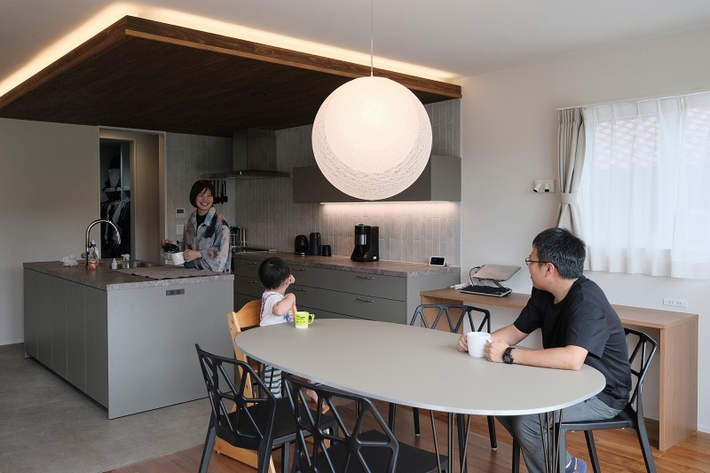 ホーム 写真集 完成物件 すべて No.247 視覚で愉しむ、リゾートヴィラのような暮らし No.247 視覚で愉しむ、リゾートヴィラのような暮らし 世羅郡 完成物件|すべて ブラウンカラーの外観。 落ち着いたブラウン+木目の外壁が、シックで上品な印象を演出。 周囲の景観にも馴染みつつ、洗練された存在感を放つ外観デザインです。画像のみを表示全 20 枚中 1 枚目を表示Next ≫ 視線が自然と広がるダイナミックな吹抜けが、リビングを明るく開放的に演出! 家族がどこにいても気配を感じられる、心地よい距離感が魅力。画像のみを表示全 20 枚中 2 枚目を表示≪ Prev|Next ≫ 開放感あふれる吹き抜け、石壁が醸し出す重厚感、そして間接照明が生み出すやわらかな光。 まるでリゾートヴィラのように、日常を非日常に変える上質な空間設計。画像のみを表示全 20 枚中 3 枚目を表示≪ Prev|Next ≫ ホテルライクなダイニング。 落ち着いた色合いと上質な素材が織りなす、洗練された空間。 間接照明が石壁を優しく照らし、まるでホテルのラウンジのような 上質な食卓を彩ります!画像のみを表示全 20 枚中 4 枚目を表示≪ Prev|Next ≫ 吹抜から見下ろすと、L字型ソファが主役のくつろぎスペース。グレージュの落ち着いた色合いに、ブラウンのクッションがアクセント。画像のみを表示全 20 枚中 5 枚目を表示≪ Prev|Next ≫ 間接照明の演出でくつろぐ。 天井や壁に設けた間接照明が、落ち着いた雰囲気を際立たせます。 夜になると温かみのある光が家全体を包み込み、リラックスできる空間に。画像のみを表示全 20 枚中 6 枚目を表示≪ Prev|Next ≫ 造作TVボード×石壁の調和。 無機質なグレーの造作TVボードが、重厚感のある石壁と美しく調和。 シンプルながらも存在感のあるデザインで、リビングに洗練された落ち着きをプラスします。 温かみのある木のフローリングとの対比が絶妙で、モダン×ナチュラルのバランスが心地よい空間 に仕上がっています。画像のみを表示全 20 枚中 7 枚目を表示≪ Prev|Next ≫ ダイニング・リビングへと視線が抜ける、広がりのあるキッチン空間。 落ち着いた色合いと質感のある素材が、高級感をプラス◎ 料理をしながら家族やゲストとの会話も楽しめる、心地よい距離感のキッチンです!画像のみを表示全 20 枚中 8 枚目を表示≪ Prev|Next ≫ 上質な素材が際立つ高級キッチン。 無垢板張りの天井と間接照明が、ラグジュアリーな雰囲気を演出。画像のみを表示全 20 枚中 9 枚目を表示≪ Prev|Next ≫ 空間をつなげる造作窓。 キッチンの前には大きな窓があり、家族の帰宅が一目で分かります!画像のみを表示全 20 枚中 10 枚目を表示≪ Prev|Next ≫ キッチン横のスタディーデスク。 料理をしながらお子さまの宿題を見たり、家事の合間にちょっとした作業をしたり。 家族とつながる便利なワークスペース で、暮らしがもっと快適に~画像のみを表示全 20 枚中 11 枚目を表示≪ Prev|Next ≫ ペンダントライトも、キッチンの間接照明も美しい~画像のみを表示全 20 枚中 12 枚目を表示≪ Prev|Next ≫ 薄いグレー×タイルで統一感。 一枚ミラーが空間にピッタリと収まり、広がりを感じさせるデザイン。画像のみを表示全 20 枚中 13 枚目を表示≪ Prev|Next ≫ 1620サイズの広々としたUB。 高級ホテルのような上質な空間で、贅沢なバスタイムを~画像のみを表示全 20 枚中 14 枚目を表示≪ Prev|Next ≫ 家に入ると、鉄骨階段と造作窓が迎えます。画像のみを表示全 20 枚中 15 枚目を表示≪ Prev|Next ≫ 大きな造作窓があることで家族の様子が分かりやすいですね!画像のみを表示全 20 枚中 16 枚目を表示≪ Prev|Next ≫ 2階ホール、間接照明でやわらかな雰囲気。 手摺は珪藻土壁と木の組み合わせ。画像のみを表示全 20 枚中 17 枚目を表示≪ Prev|Next ≫ 2階ホール、吹抜越しに広がる景色。 造作本棚と読書スペースでくつろぎの時間を~画像のみを表示全 20 枚中 18 枚目を表示≪ Prev|Next ≫ スムーズな家事動線! ランドリー → 洗面 → 脱衣 → UB 洗濯・乾燥・収納までが効率的に完結する考え抜かれた動線設計。 ランドリールームから洗面室、脱衣室、UBへとつながり、家事の負担をグッと軽減。 忙しい毎日をスマートにする、快適な暮らしのための間取りです!画像のみを表示全 20 枚中 19 枚目を表示≪ Prev|Next ≫ 動線バツグン!パントリー横のファミリークローゼット。 キッチン横にパントリー、そのすぐ隣にファミリークローゼットを配置。 食材の収納も、家族の洋服管理もスムーズな家事動線でラクラク◎ 忙しい毎日を快適にする、暮らしに寄り添う間取り設計です!画像のみを表示全 20 枚中 20 枚目を表示≪ Prev 「加度商の家を選んでよかったです」 \笑顔あふれるお客様の声をご紹介しています/ 加度商で建てた人の声はこちら 今、実際に見学できる家があります! 「築15年を楽しむ家」 尾道市栗原西 ご予約はこちら 期間限定開催のお客様の家「完成見学会」 見学会・イベント情報はこちら LINEおともだち限定の特典情報満載 まずは、おともだち登録し