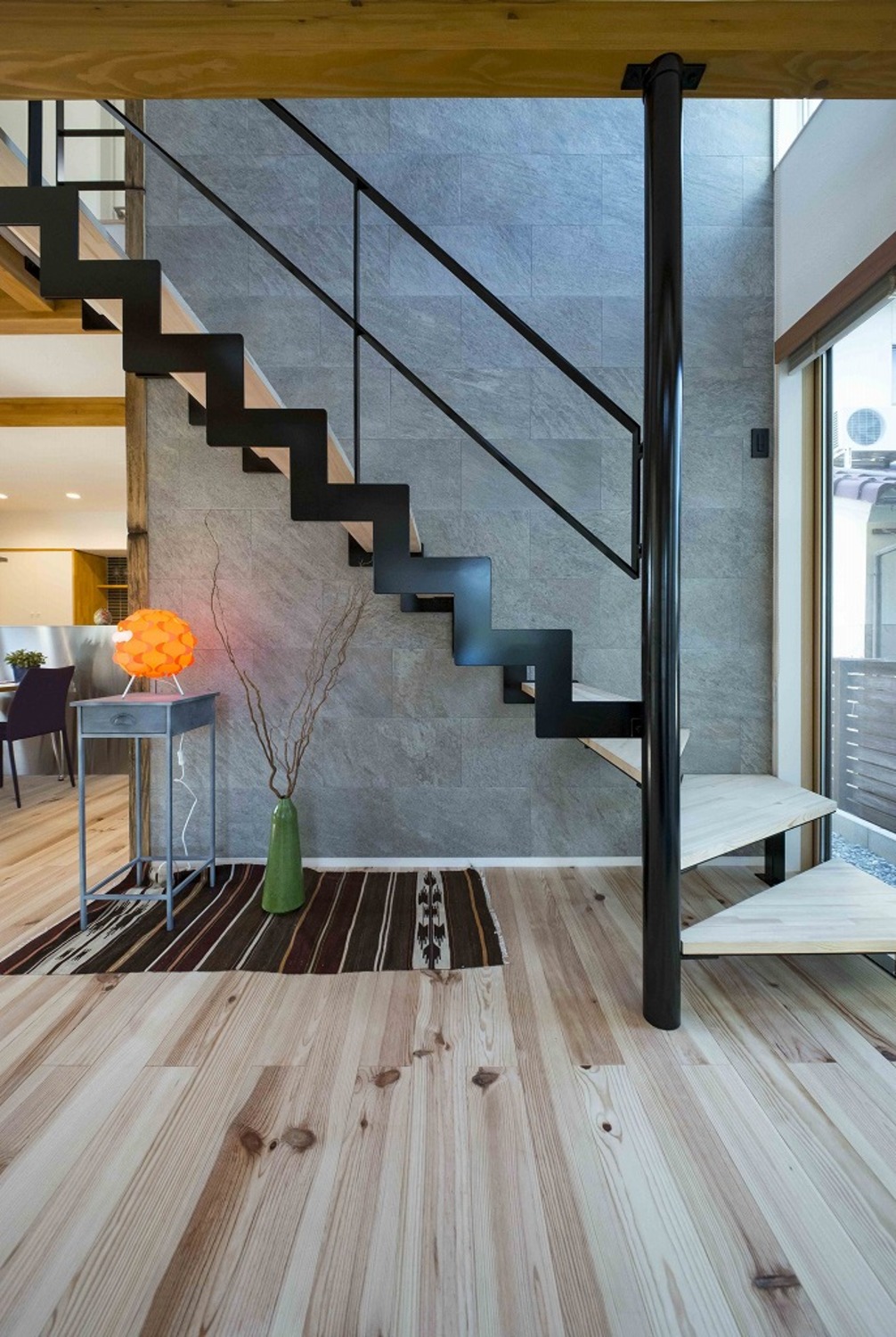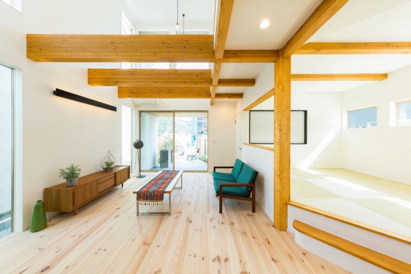 ホーム 写真集 完成物件 すべて No.119【コンテスト受賞】タイルを駆使した チョコレートカラーの家 No.119【コンテスト受賞】タイルを駆使した チョコレートカラーの家 福山市 完成物件|すべて シックなブラウンに片流れの「加度商シルエット」 窓枠の木や外構の植栽が華やかに彩ります アイアン手摺とも相性◎ 画像のみを表示全 20 枚中 1 枚目を表示Next ≫ 夜になると庭の照明やリビングからの光が家を照らします ライトアップされた植栽はシームレスな塗り壁に影を落とします なんともゴージャスな見栄えです 画像のみを表示全 20 枚中 2 枚目を表示≪ Prev|Next ≫ 玄関ポーチも一つのリビングとして考えました 面積以上に広い空間で自然を楽しむことができます ライトアップも素敵! 画像のみを表示全 20 枚中 3 枚目を表示≪ Prev|Next ≫ ソファーに座った目線 あえて斜めに貼ってあるタイルが視点を遠くに導いてくれます 外と中を曖昧につなぐことで、空間を広く開放的に、そしてオシャレに変えてくれます 軒裏の板張りがいい味を出していますね 画像のみを表示全 20 枚中 4 枚目を表示≪ Prev|Next ≫ 吹抜けで高さを演出することにより、開放感と明るさをしっかり確保しました 大開口の吹き抜けにはたくましい梁が通っています 広々とした空間の中にも優しく区切りを入れています 画像のみを表示全 20 枚中 5 枚目を表示≪ Prev|Next ≫ 2階ホールには、黒の鉄骨手摺を採用してすっきりと。 木との組み合わせで、空間にメリハリと抜け感が生まれます。吹き抜けを囲むラインが、軽やかなアクセントに。画像のみを表示全 20 枚中 6 枚目を表示≪ Prev|Next ≫ ダイニングのすぐ横に、壁付けカウンターを設けてちょっとした勉強や作業スペースに。 家族の気配を感じながら、自分の時間も大切にできる場所です。画像のみを表示全 20 枚中 7 枚目を表示≪ Prev|Next ≫ 段差でゆるやかに区切った畳スペースは、くつろぎにも遊び場にもぴったり。その隣には壁付けカウンターを設けて、勉強やワークにも便利な一角に。画像のみを表示全 20 枚中 8 枚目を表示≪ Prev|Next ≫ 存在感のあるデザイン階段「イナズマ君」 それを引き立て、部屋にアクセントをつける石目調のタイル 無垢の木と塗り壁の優しい空間の中にも重厚感を感じさせる重要な存在です 画像のみを表示全 20 枚中 9 枚目を表示≪ Prev|Next ≫ キッチンの背面には作り付けの食器棚を設置 アクセントにタイルを貼ることで、お皿などすべてがインテリアに変わるオシャレなキッチンを演出します タイル・無垢の木・ステンレス・塗壁 すべての異素材が調和した空間です 画像のみを表示全 20 枚中 10 枚目を表示≪ Prev|Next ≫ キッチンの後ろは加度商オリジナル造作食器棚 収納戸のみではなく、高さ違いの飾り棚もつけちゃいました よく使う場所だからこそ、可愛くお洒落でありたいですよね! 画像のみを表示全 20 枚中 11 枚目を表示≪ Prev|Next ≫ ホワイトな木目調の門壁 玄関部分の目隠しには窓のようなデザインを加え、プライベートを守りながらも開放感も作り出されます お家に入る前から「お洒落さ」を醸し出していきましょう 画像のみを表示全 20 枚中 12 枚目を表示≪ Prev|Next ≫ LDKからの掃き出し部分にはタイルを使用 水洗いのみでお手入れできるので、お掃除も簡単です 大きな窓からは、いい雰囲気のLDKが 目隠しに囲まれた空間なので、照明が映える夕暮れ・夜の時間帯でも、ここからの景色を楽しめます 画像のみを表示全 20 枚中 13 枚目を表示≪ Prev|Next ≫ タイル仕上げのテラスは、お気に入りのソファでくつろげるアウトドアリビングに。 視線をやさしく遮る木塀と植栽で、プライベート感もばっちり。 青空の下で過ごす時間が、ちょっと特別になります。画像のみを表示全 20 枚中 14 枚目を表示≪ Prev|Next ≫ 窓枠を木で囲ってみました 整頓された窓の配置が、美しく強調されます ちょっと珍しい「Chocolate」色の塗り壁を施した外観 無垢の木ともいい感じになじみます 画像のみを表示全 20 枚中 15 枚目を表示≪ Prev|Next ≫ キッチンの壁には個性的なタイルを施しました 飾り棚の存在がさらに映え、相乗効果OK!画像のみを表示全 20 枚中 16 枚目を表示≪ Prev|Next ≫ 隅っこに設けられたパソコン&勉強デスク 壁の一方面を黒板仕様にすることで 飽きない斬新なデザインとなっています 画像のみを表示全 20 枚中 17 枚目を表示≪ Prev|Next ≫ 階段はオリジナル鉄骨階段「イナズマ君」 空間をじゃますることなく、インテリアとしてもインパクト大です マットな黒い質感が美しいです 画像のみを表示全 20 枚中 18 枚目を表示≪ Prev|Next ≫ 玄関に入ると、正面はデコマド リビングからの光がこぼれ、家族の存在を感じることができます すりガラスなので中のプライバシーを守ることも◎ 白く爽やかな塗り壁の中にもブラックな窓枠でアクセントを 画像のみを表示全 20 枚中 19 枚目を表示≪ Prev|Next ≫ 畳に光がすっと伸びる、静かな和の空間。 低めの窓と壁の陰影が、心をふ