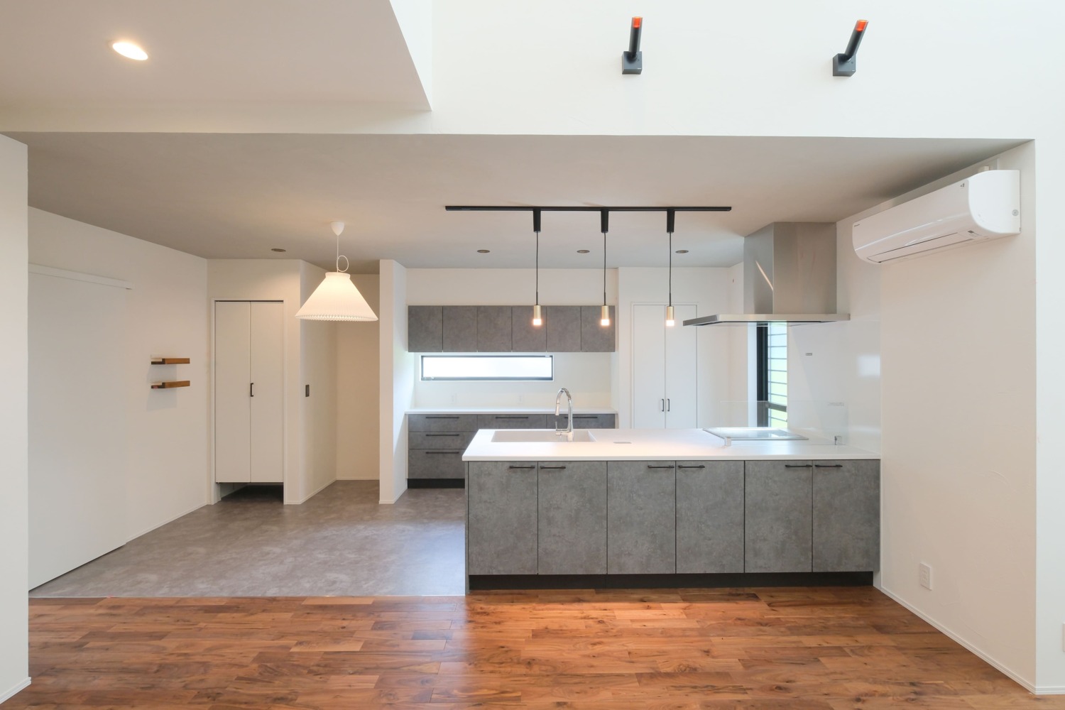 ホーム 写真集 完成物件 すべて No.202 造作家具にこだわったグレーの家 No.202 造作家具にこだわったグレーの家 尾道市 完成物件|すべて グレーの塗り壁の片流れ屋根。玄関部分はステンレスの庇を設置し、シンプルな外観デザインを保ちながらも雨を防いでくれます。 グレーの塗り壁と杉の板張りは相性がよく、人気の組み合わせです。 画像のみを表示全 11 枚中 1 枚目を表示Next ≫ グレーを基調としたキッチンスペース。向かって左の物入にはお掃除ロボット『ルンバ』が通れるよう、建具の高さを調節しています。ルンバの基地を取り入れた間取りプランは近年人気上昇中です。 画像のみを表示全 11 枚中 2 枚目を表示≪ Prev|Next ≫ 天井はグレーの塗り壁仕上げ。フラットキッチンもグレーを採用。さらに、備え付けのカップボードもキッチンと同じカラーのものをとりいれました。 統一感のあるホテルライクなキッチンスペースです。 画像のみを表示全 11 枚中 3 枚目を表示≪ Prev|Next ≫ 床材はブラックウォルナット。高級感のあるキッチンスペースとよく似合い、落ち着きのあるLDKとなっています。 画像のみを表示全 11 枚中 4 枚目を表示≪ Prev|Next ≫ 吹き抜けのリビングには鉄骨階段「イナズマ君」。窓からの光を遮らず、明るさと開放感に満ちた家族空間が実現します。壁掛け予定のTVの下部には造作のTVボードを設置しました。床材と同じ素材で造っているため、シンプルでまとまった雰囲気となりました。 画像のみを表示全 11 枚中 5 枚目を表示≪ Prev|Next ≫ 吹き抜けから眺める、ホテルライクなキッチングレートーンでまとめたアイランドキッチンは、インテリアの主役になる存在感。画像のみを表示全 11 枚中 6 枚目を表示≪ Prev|Next ≫ 2階ホールのフリースペース。開放的な吹き抜けを前にしたカウンターデスクです。 デスクには作業用にコンセントと収納スペースも完備。使い心地と快適さを掛け合わせたデスクとなっています。 画像のみを表示全 11 枚中 7 枚目を表示≪ Prev|Next ≫ 大きな三面鏡の造作洗面台。収納スペースはシンプルに仕上げ、利便性を追求しました。 画像のみを表示全 11 枚中 8 枚目を表示≪ Prev|Next ≫ 2階にも洗面台を設置しています。もちろん造作です。1階の洗面と同じオーク塗装の集成材を使用しています。 セカンド洗面台はお掃除や加湿器の給水の際にとても便利です。お水の為だけに階段を上り下りするのも面倒ですもんね。 画像のみを表示全 11 枚中 9 枚目を表示≪ Prev|Next ≫ 造作の手洗いカウンター。カウンター下には間接照明を取り入れ、高級感のある落ち着いた雰囲気を演出。 画像のみを表示全 11 枚中 10 枚目を表示≪ Prev|Next ≫ 玄関とシューズクローク。ロールスクリーンをつけることで収納部分を隠すことができ、来客時もすっきりとした玄関でお出迎えすることが出来ます。 画像のみを表示全 11 枚中 11 枚目を表示≪ Prev 「加度商の家を選んでよかったです」 \笑顔あふれるお客様の声をご紹介しています/ 加度商で建てた人の声はこちら 今、実際に見学できる家があります! 「築15年を楽しむ家」 尾道市栗原西 ご予約はこちら 期間限定開催のお客様の家「完成見学会」 見学会・イベント情報はこちら LINEおともだち限定の特典情報満載 まずは、おともだち登録してカッコいい家づくりの勉強をしてみませんか? 一覧へ戻る 完成物件 リフォーム・リノベーション 店舗・事務所 平屋 すべて 尾道市 福山市 三原市 一覧 一覧 一覧