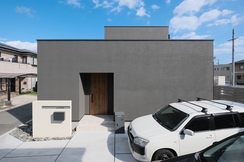 【外観】重厚感のあるダークグレーが引き立つ、シンプルな外観
