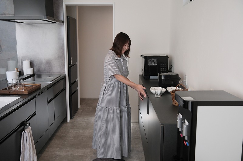 奥様:私はキッチンが広いしきれいだから、「料理しよう!」っていう気持ちになります。広いから洗い物もしやすいですしね。 私は元々、火が見える方が料理しやすいかなって思ってて、IHにあまりいいイメージがなかったんです。でも実際に使いだしたら、お湯が沸くのもガスよりIHの方が早いし、お手入れも楽々だし「IHいいじゃん!」って思いました。