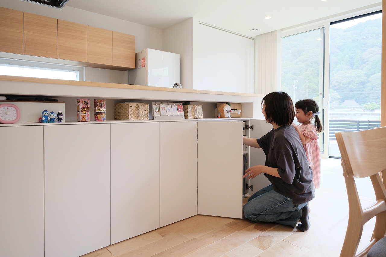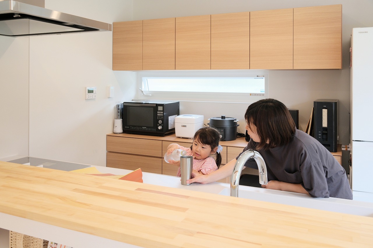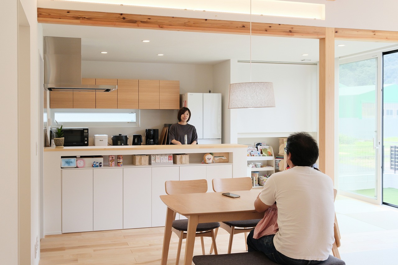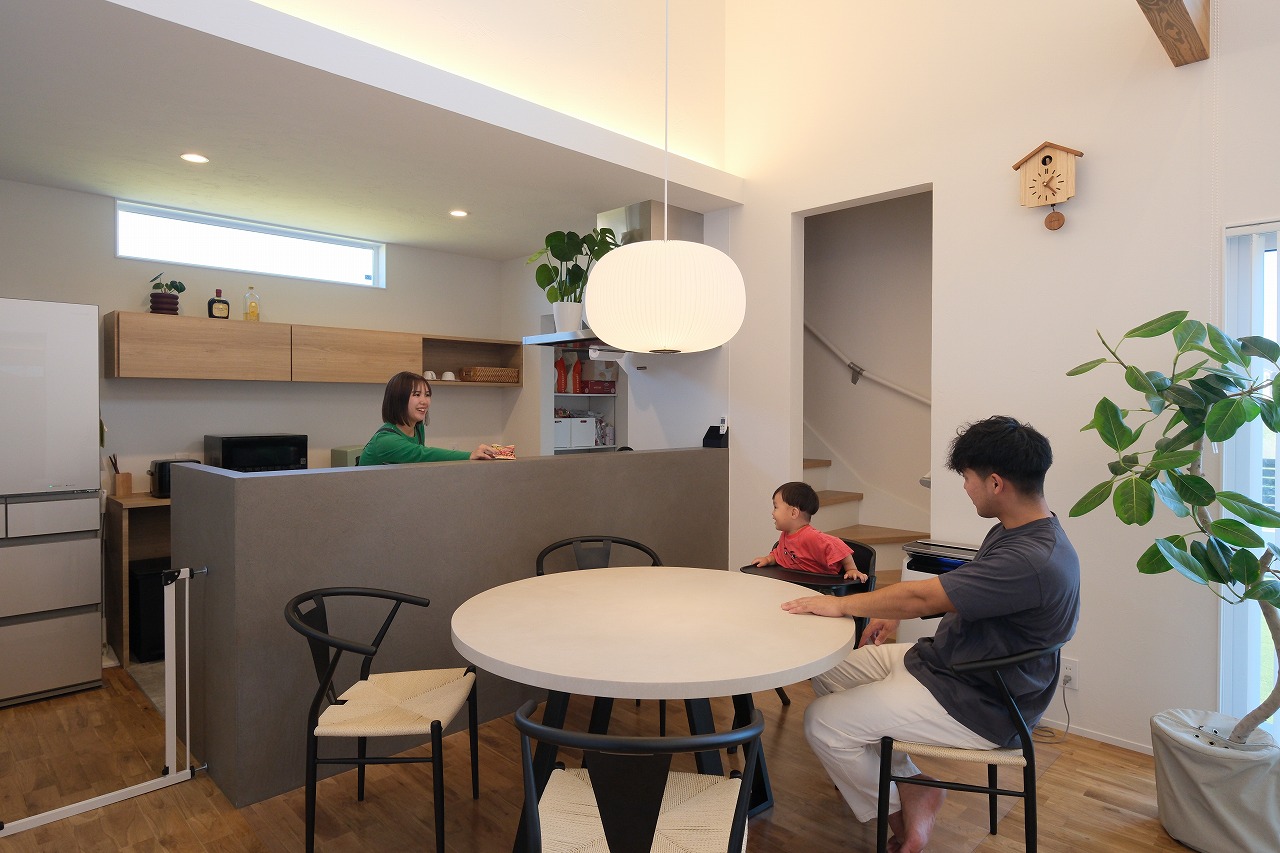 奥様:どこにいても目が届く間取りだから、私も何か作業をしながらテレビを見たりできるし、子どもが遊んでる時も、顔が見えるから安心できるんです。子供も私の存在を感じられるだけでも、ひとりで落ち着いて遊んでくれたりするから。