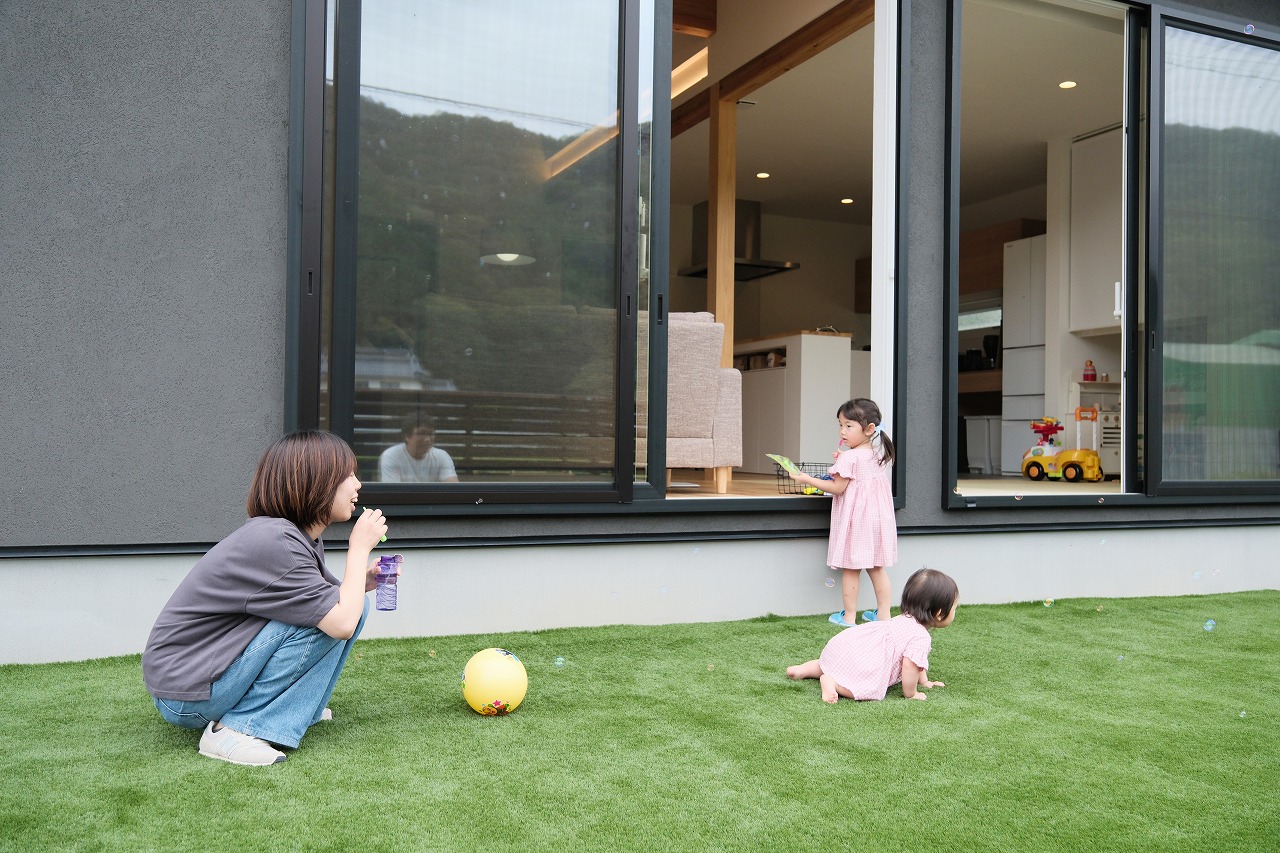 奥様:私も「言ってくれんかな」て思ってた(笑) 上の子も、「私の家かっこいいよね~」ってよく言ってるんですよ(笑)。それに毎朝大きい窓からじいじとばあばが見えるから、喜んでます。